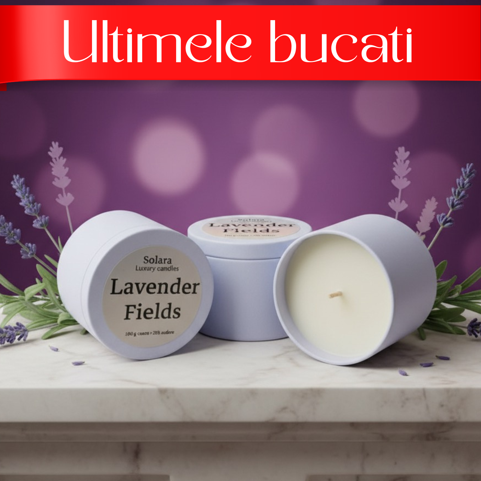 LAVENDER FIELDS, 100g, ardere 25 h, lumanare parfumata din ceara de soia, Solara Candles