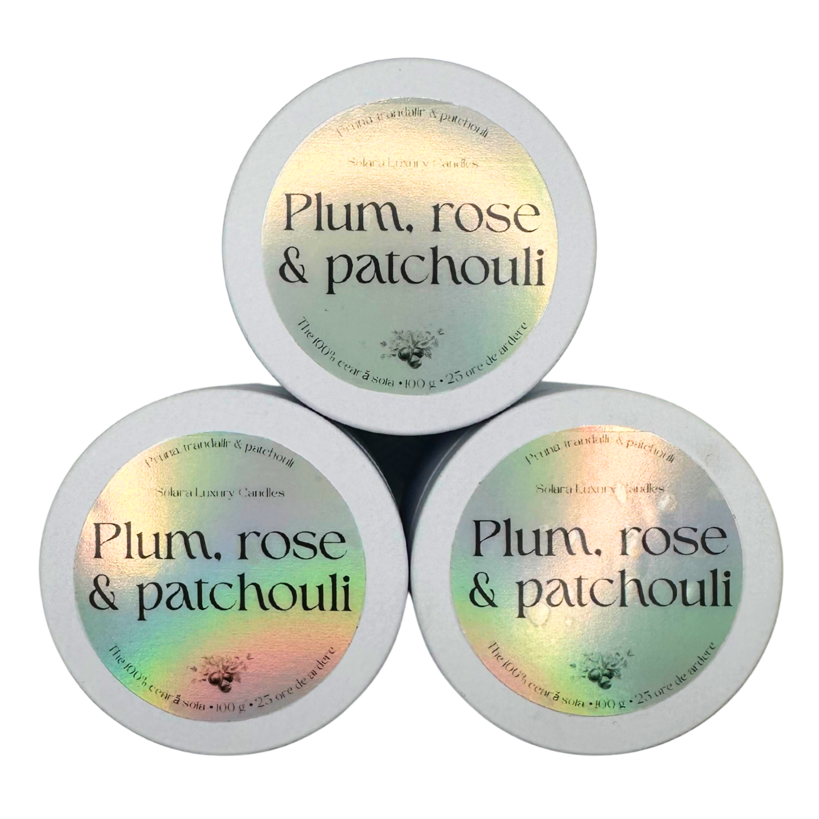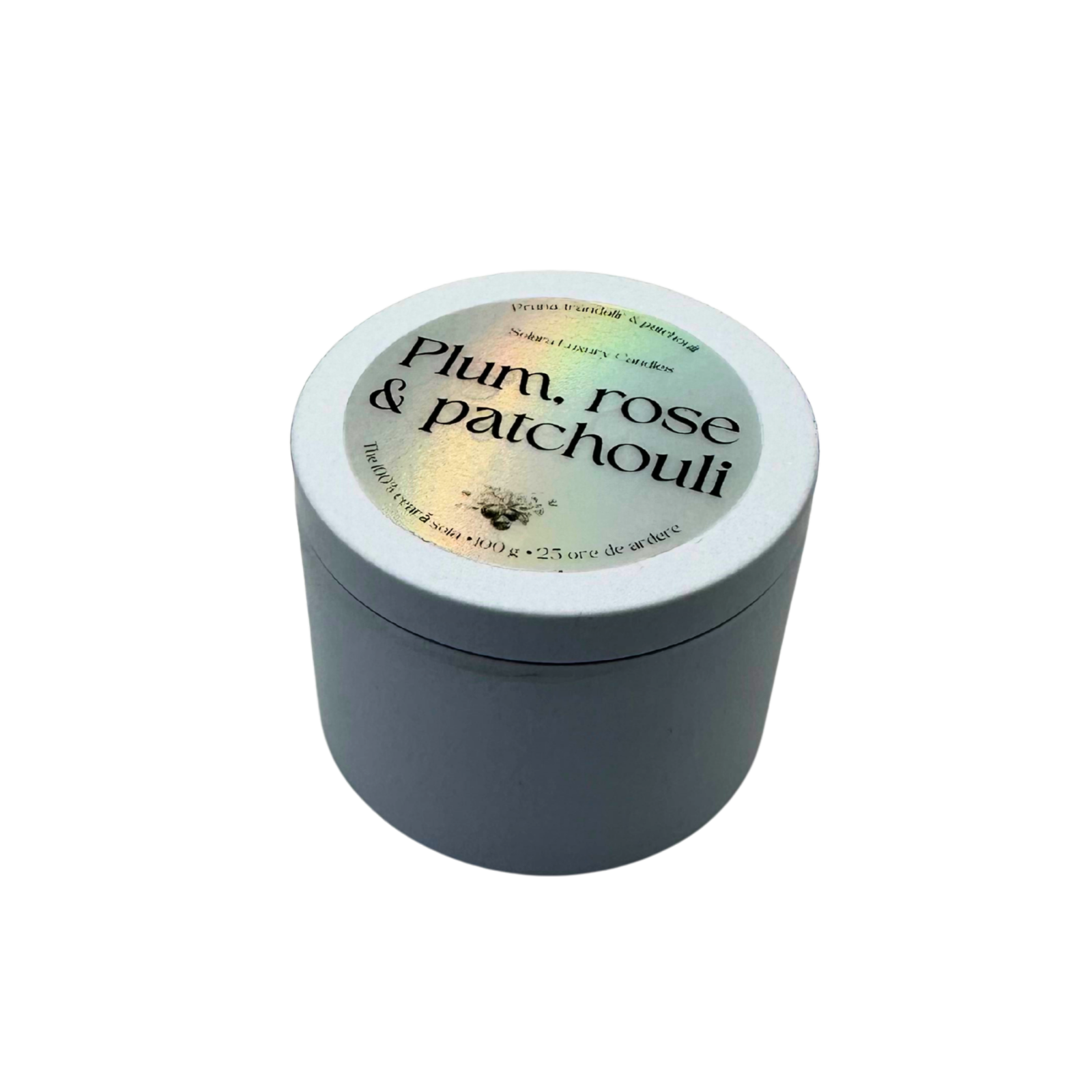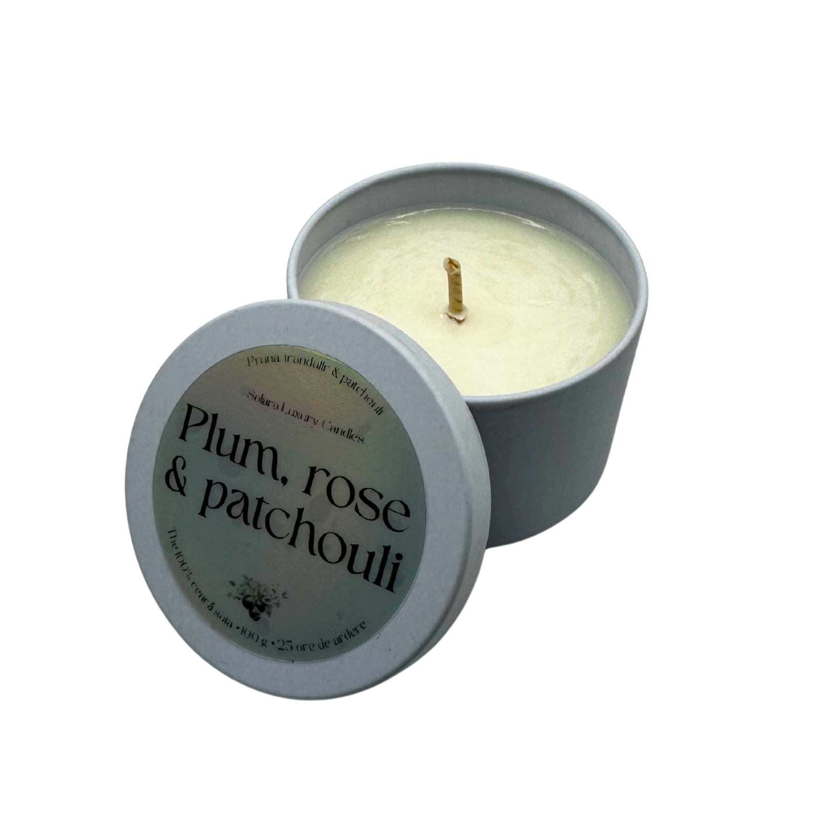 Lumânare parfumată handmade cu aroma de Plum, Rose & Patchouli - prune coapte, trandafir, patchouli