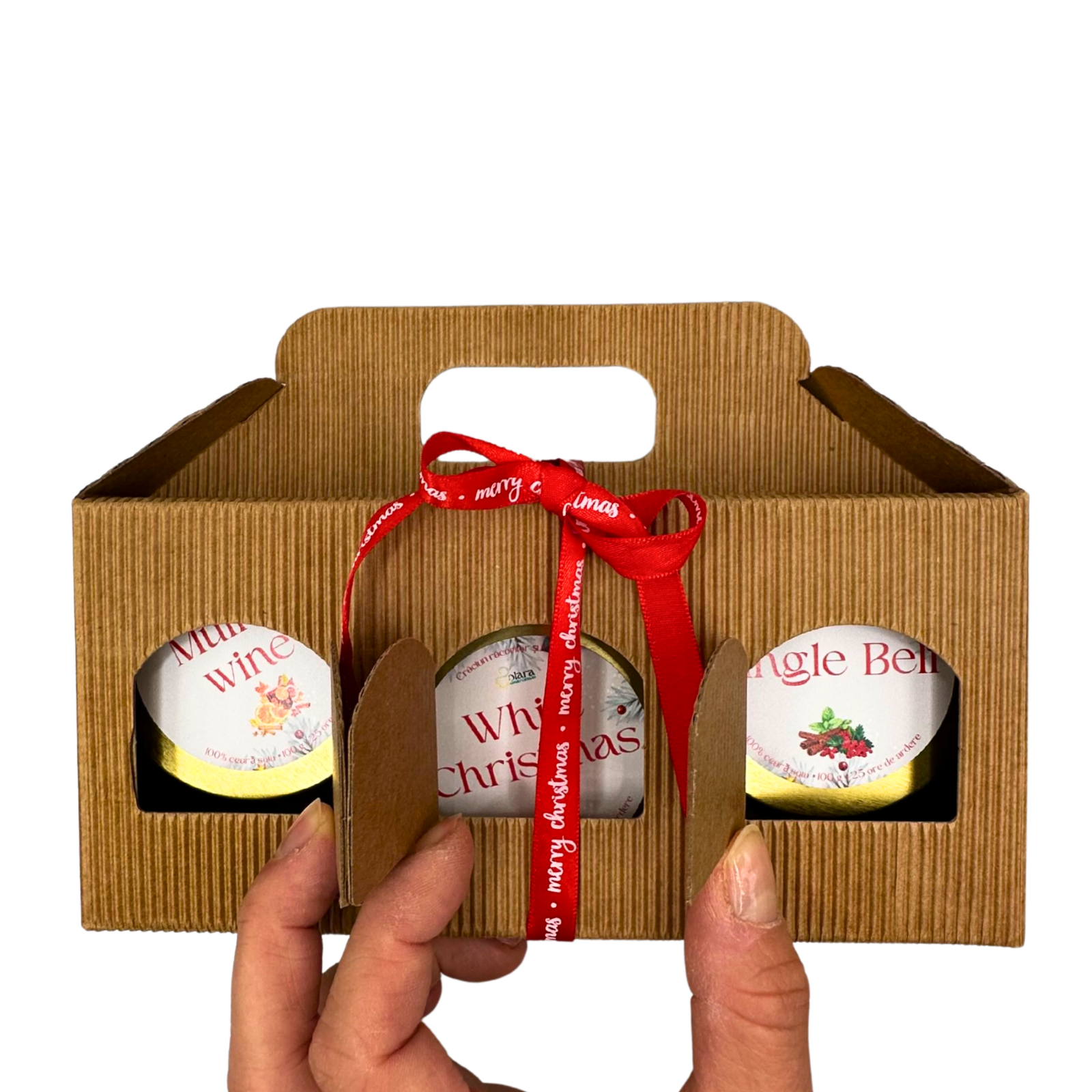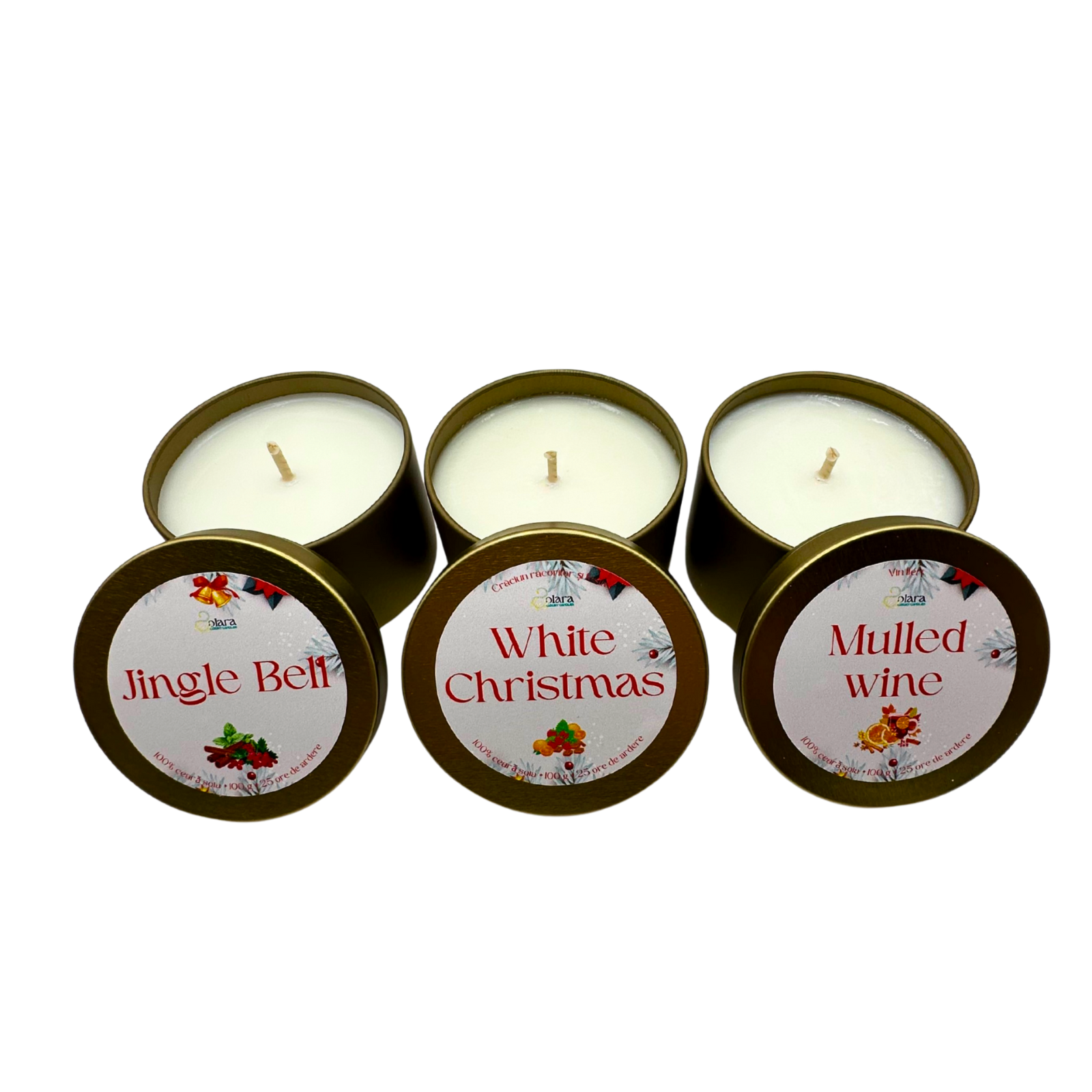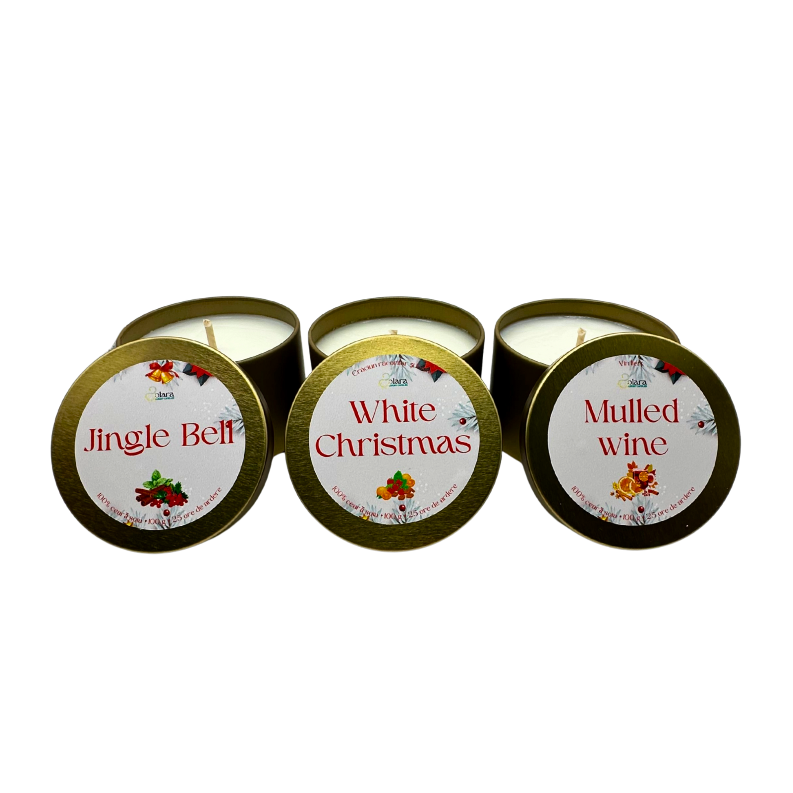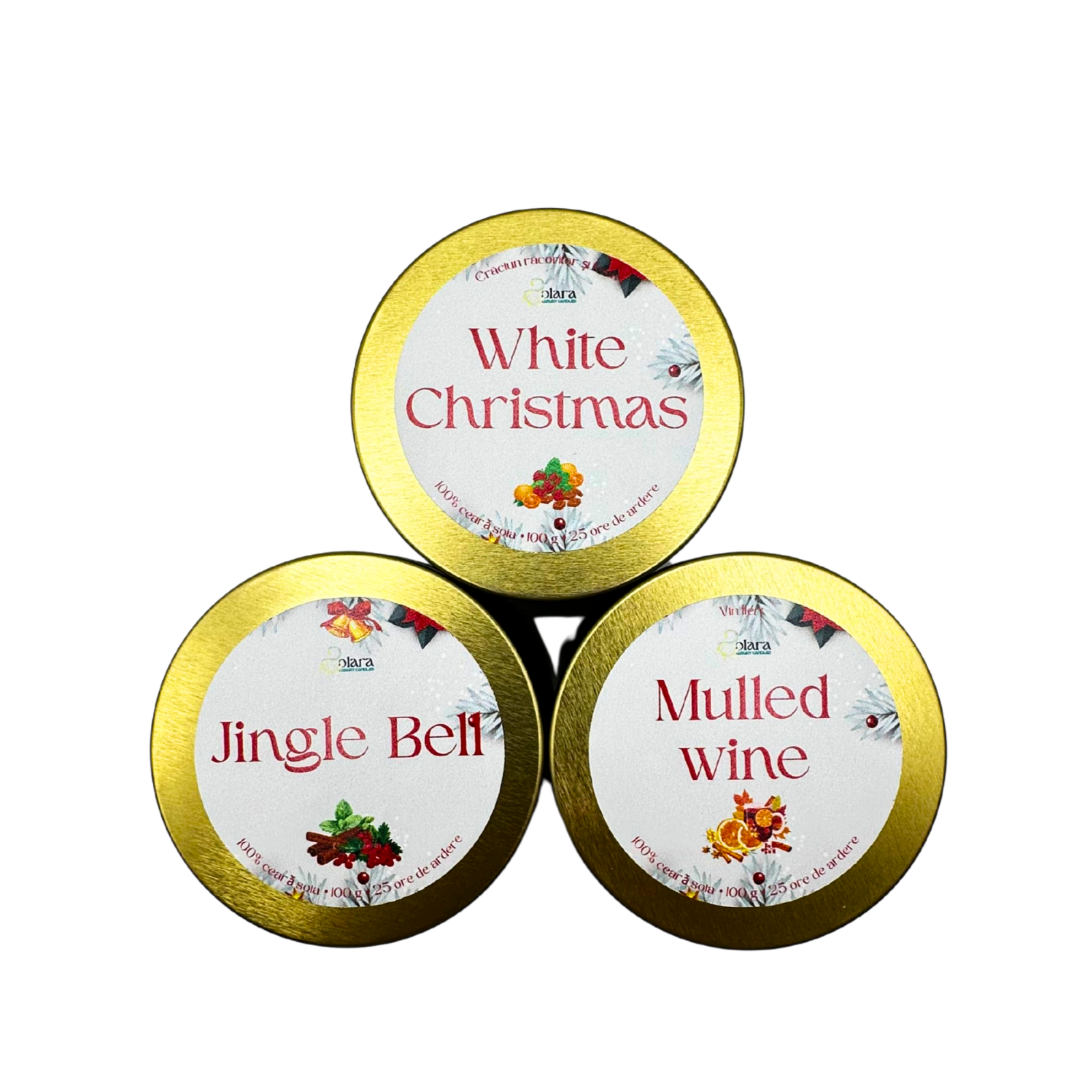 Transformă atmosfera sărbătorilor cu acest pachet special de trei lumânări de 100g, create pentru a aduce magia Crăciunului direct în casa ta. Fiecare lumânare este turnată manual și îmbogățită cu arome festive precum scorțișoară caldă, portocală proaspătă, vin fiert – note perfecte pentru serile liniștite de iarnă.